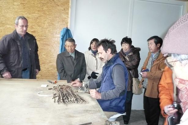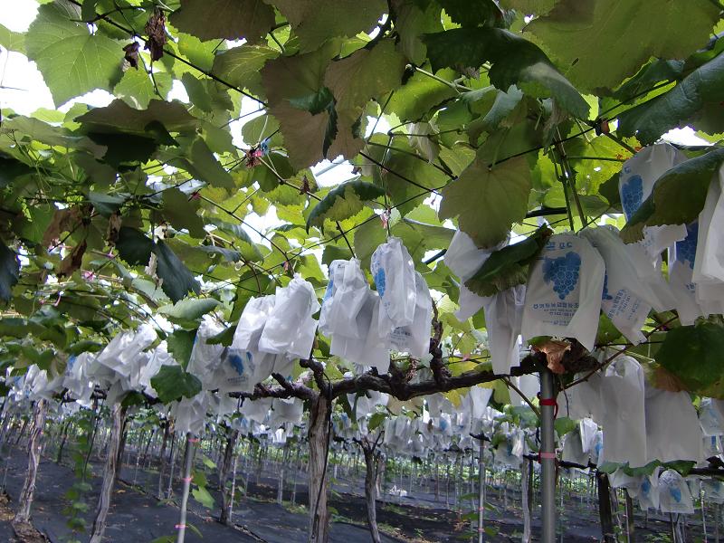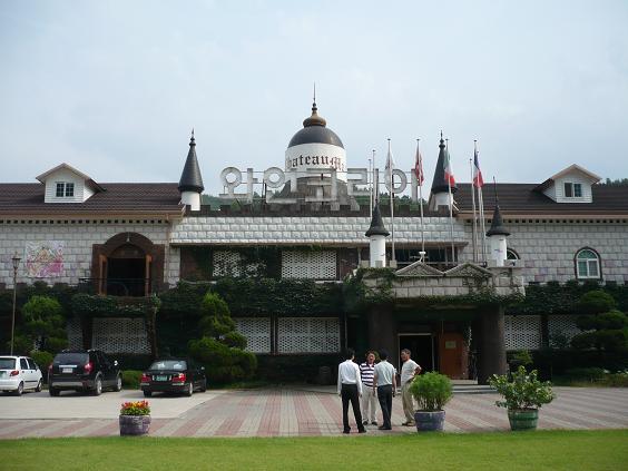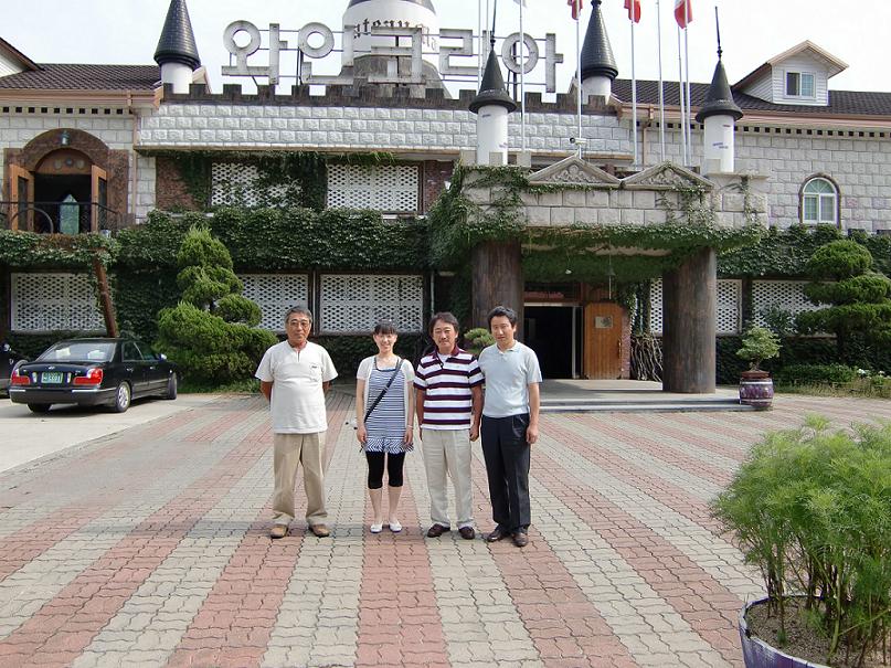 ソウルより高速道路で4時間南へ走り 太田(テジョン)を過ぎ永洞(ヨンドン)の町へ入りました。 道路沿いには、ナシ園、ぶどう園が続く果樹地帯です。 ここにワインコリアーがあります。 韓国には、8社くらいのワイナリーがあるそうですが、その中で 一番大きな会社だそうです。 年間1000t、100万本のワインを作るそうです。 余市で生産される専用種が約1000tですから1社でまかなえますね。 ここのワインのラベルには、『シャトーマニ』と書いてありますが “マニ”とは、この地に来たのは2004年で、それまでマニ山の洞窟でやっていたそうで その“マニ”だそうです。 廃校の学校を改装し、はじめたそうです。 皆で試飲をし、中を案内してもらい 今夜の宿へ張さんの運転で北へ走り、温陽温泉へ到着しました。 続く・・・