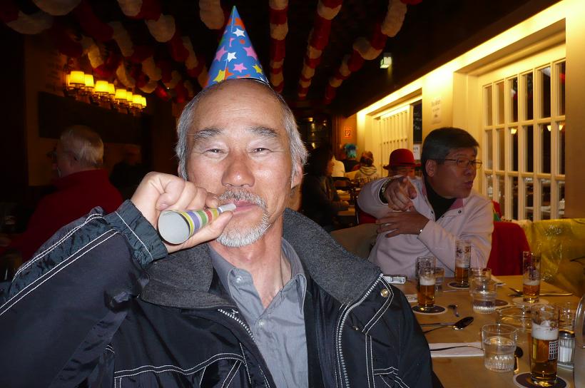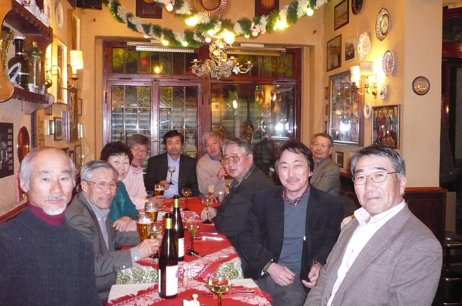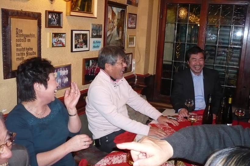 リューデスハイムのホテル 食事前の様子。 毎日昼夜と美味しい料理、ワイン、ビールを飲みながら、楽しく食事をいただきました。 藤本氏もご機嫌です。 今夜のワイン。 22日 今日は、この旅の最後の日。 8時にバスに乗り込みライン川沿いに北へ走ります 朝、ホテル裏のぶどう畑。 ラインヘッセン、ラインガウ、アールのぶどう畑を見ながら、一路ケルンへ コブレンツ。モーゼル川とライン川の合流点の町。 ライン川を上る客船や沢山のトラクターを積んだ運搬船。 600年もかけて作られたケルンの大聖堂。 謝肉祭の最中。 皆、仮装をして楽しそう あっスパイダーマンだっ これがこの旅最後の昼食。 これから、フランクフルトへ走り帰国の途へ。 この旅ではノイシュヴァンシュタイン城やヴィース教会などなかなかいけない所を観ることができ、また、美味しい料理、ワイン、ビールを沢山いただくことができました。 3,000kmを超えるバスの旅でしたが、通訳の中山さん、運転手のハリーさんのおかげもあり、皆、元気で楽しい旅を続けることが出来ました。 最後に、この企画に関して北海道ワインの嶋村副社長のお世話をいただきましたことに、お礼を申しあげます。 ありがとうございました。 完
