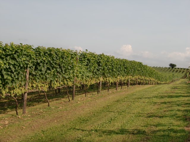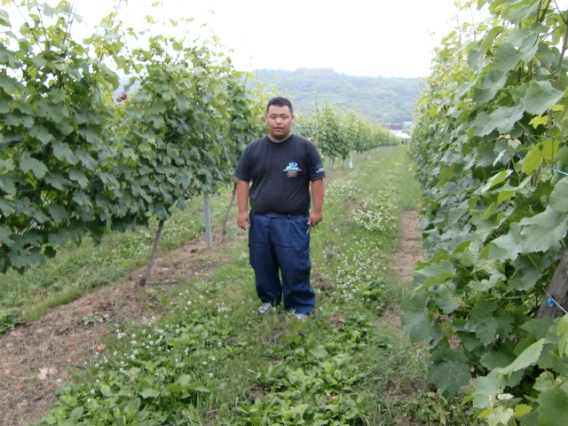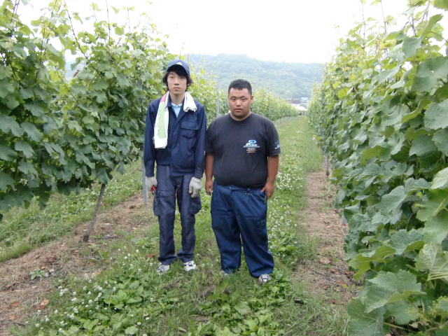 ワイン用ぶどうは葉とり作業も終盤で、少し強い太陽で日焼け生害が出ています。