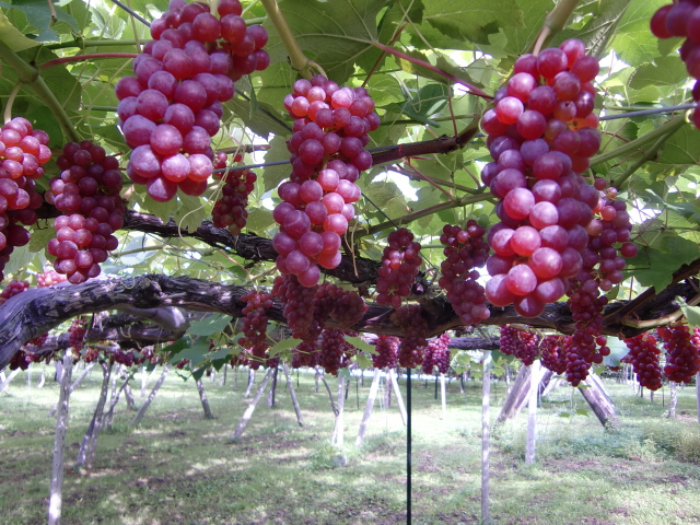 それでも、ぶどうやプルーンは色づき収穫も始まりました。